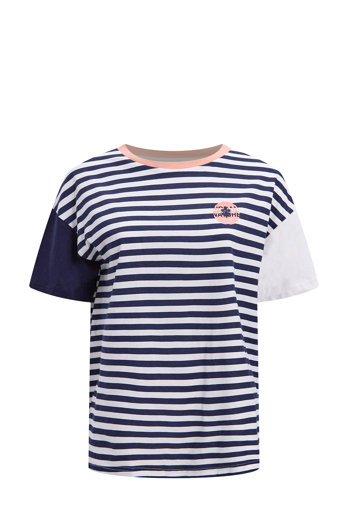 Классическая футболка в стиле колор-блок с контрастными рукавами и выразительной горловиной. На груди красуется дизайнерский вышитый логотип URBANATURE.